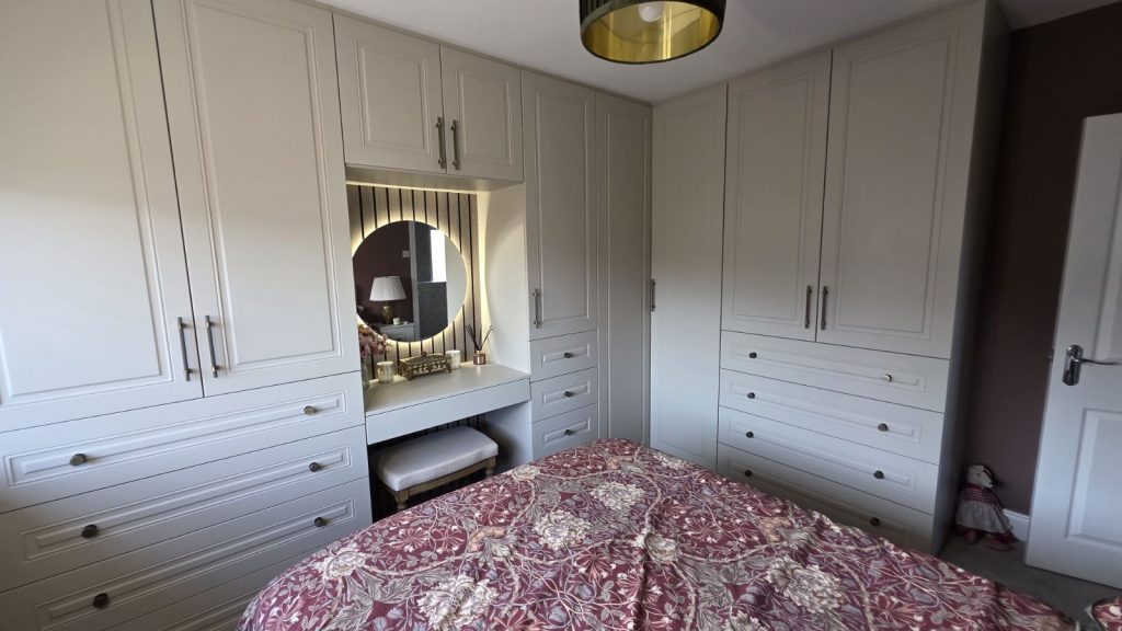 Transform your home with our expertly designed custom wardrobes and storage solutions. Visit our Belfast showroom, open 6 days a week, and meet with our design team. Schedule a personal appointment to bring your vision to life.